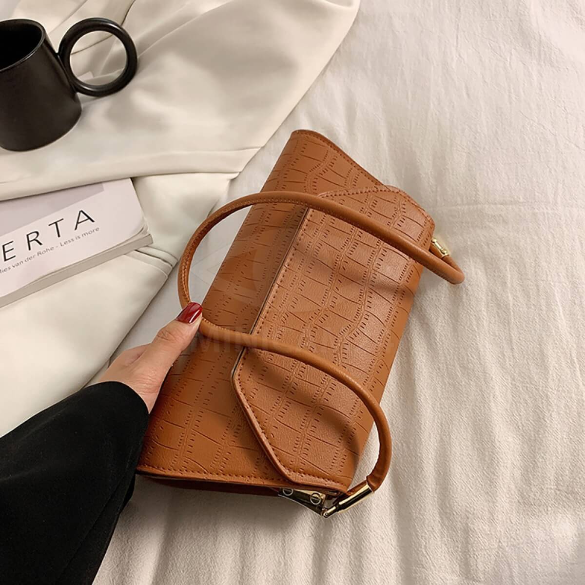 Сумка-багет женская Stella коричневая в форме трапеции – идеальный вариант для выхода на праздничные мероприятия и ежедневной носки. Сумка женская выполнена из белой экологической кожи, которая не требует особого ухода. Мягкая экокожа хорошо переносит холод и жару, не трескается в минусовую температуру, не выцветает под действием ультрафиолета и не боится дождя или снега. Сумка через плечо имеет прочный каркас, поэтому не теряет своей формы. Клапан застегивается на магнитные замки. Длина ручек не регулируется. Прочная хлопковая подкладка не разрывается из-за острых предметов. Внутри сумки-багета есть объемный отсек и небольшой кармашек на молнии для мелочей.